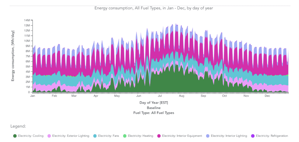 - Export the time series data as a CSV file, choosing “15 minute resolution.” This is not the load profile, but an aggregation of the load profiles of all the buildings that meet the selected criteria.